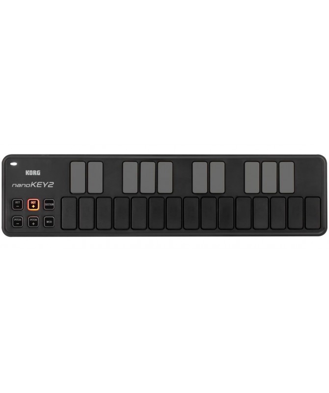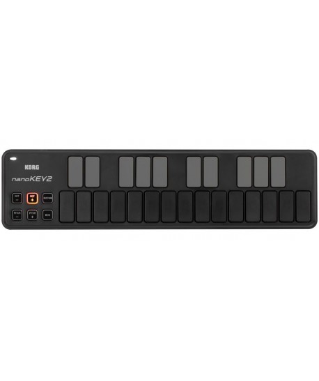 nanoKEY2 è il frutto di un nuovo concept estetico ed ergonomico, che nasce dalla combinazione delle tecnologie implementate nelle nuove tastiere MIDI professionali e nelle tastiere dal tasto sottile (vedi serie micro) prodotte negli ultimi anni da Korg. Rispetto alla precedente versione della NanoKey, in questa nuova veste avremo una risposta notevolmente migliorata. nanoKEY2 è equipaggiata di tasti più ampi e distaccati tra di loro, evitando così la riproduzione di note involontarie. Grazie al know-how degli ingegneri Korg, il tocco e la risposta dinamica dei tasti sono stati perfettamente calibrati per una più fedele riproduzione della performance. I pulsanti Octave Shift (up e down) consentono di trasporre velocemente la tastiera in un range di +/-4 ottave andando così a coprire tutte le note MIDI disponibili. nanoKEY2 offre inoltre i pulsanti Pitch Bend, Modulation e Sustain. Ognuno di questi può essere programmato in base alle esigenze della tua performance mediante il software Korg Kontrol Editor. nanoKEY2 è programmabile nel dettaglio dal software Korg Kontrol Editor, che è scaricabile gratuitamente dal sito Korg e installabile sul tuo computer PC, o Mac. Potrai scegliere tra 4 differenti curve di risposta dinamica (3 + una fissa) e specificare il numero di Control Change inviabile dai tasti Modulation e Sustain.