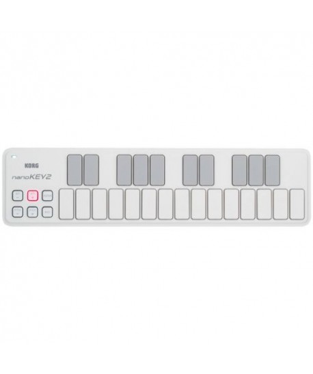 nanoKEY2 è il frutto di un nuovo concept estetico ed ergonomico, che nasce dalla combinazione delle tecnologie implementate nelle nuove tastiere MIDI professionali e nelle tastiere dal tasto sottile (vedi serie micro) prodotte negli ultimi anni da Korg. Rispetto alla precedente versione della NanoKey, in questa nuova veste avremo una risposta notevolmente migliorata. nanoKEY2 è equipaggiata di tasti più ampi e distaccati tra di loro, evitando così la riproduzione di note involontarie. Grazie al know-how degli ingegneri Korg, il tocco e la risposta dinamica dei tasti sono stati perfettamente calibrati per una più fedele riproduzione della performance. I pulsanti Octave Shift (up e down) consentono di trasporre velocemente la tastiera in un range di +/-4 ottave andando così a coprire tutte le note MIDI disponibili. nanoKEY2 offre inoltre i pulsanti Pitch Bend, Modulation e Sustain. Ognuno di questi può essere programmato in base alle esigenze della tua performance mediante il software Korg Kontrol Editor. nanoKEY2 è programmabile nel dettaglio dal software Korg Kontrol Editor, che è scaricabile gratuitamente dal sito Korg e installabile sul tuo computer PC, o Mac. Potrai scegliere tra 4 differenti curve di risposta dinamica (3 + una fissa) e specificare il numero di Control Change inviabile dai tasti Modulation e Sustain.