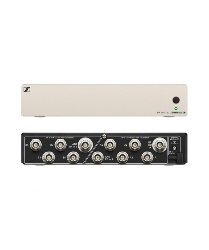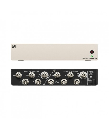 Lo splitter di antenna per sistemi Sennheiser ew-d, consente di interconnettere 8 cavi bnc all'interno dell'unità e gestire il segnale RF tra le due antenne A-B. Lo splitter attivo è fornito con alimentatore.