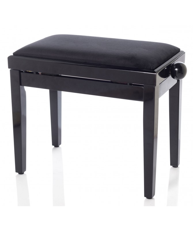 Panchetta in legno per pianoforte e organo regolabile in altezza. Materiali selezionati per una qualità durevole nel tempo e uniformità del colore. Meccanismo di regolazione dell’altezza a doppio braccio che garantisce elevata stabilità. Colore nero lucido, cuscino in velluto nero.