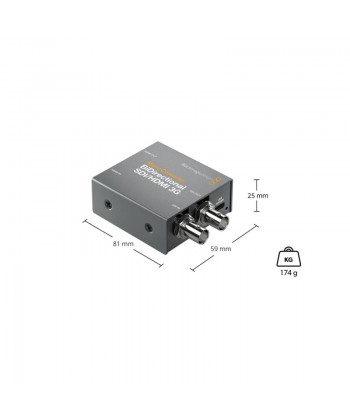 Il convertitore bidirezionale di qualità broadcast più piccolo al mondo. Converte contemporaneamente l’SDI in HDMI e l’HDMI in SDI, anche in formati differenti. Compatibile con il protocollo di controllo camera, consente di usare le Blackmagic Pocket Cinema Camera con gli switcher SDI professionali per la produzione dal vivo. Ha in dotazione un caricatore AC da 100-240V con adattatori internazionali.