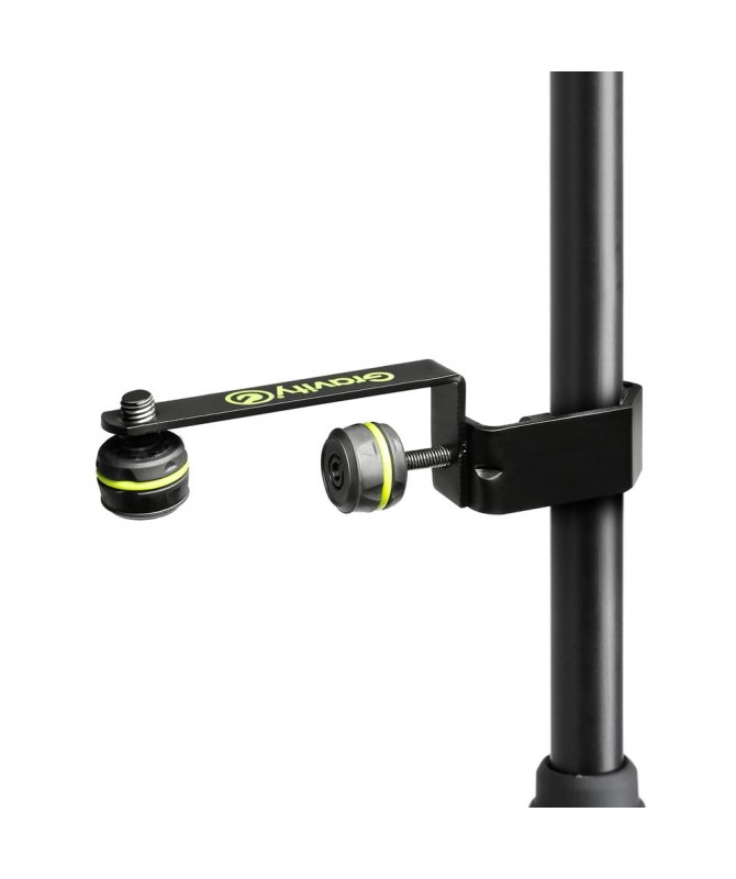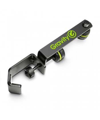 Gravity MAMH 01 una guida per microfoni in acciaio con rivestimento a polvere nero per il fissaggio su stativi e leggii di diametro max. di 30 mm. dotata di vite zigrinata maneggevole con filettatura da 3/8" per il fissaggio della clip per microfono (non compresa nella fornitura).