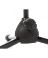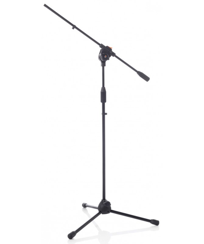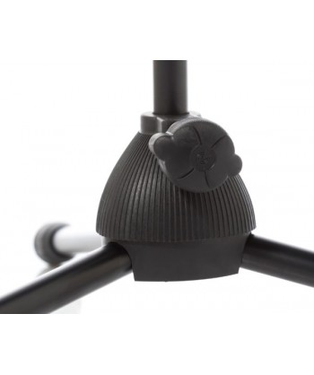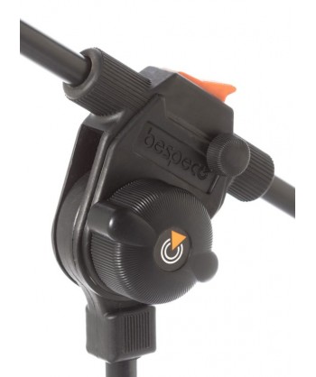 Asta microfonica a giraffa con comodo pulsante in nylon caricato arancione che permette una regolazione facile e veloce. Manopola centrale ergonomica rivestita in gomma. Snodo, contrappeso e base in nylon caricato. Piedini in gomma antivibrazioni. Manopola di sicurezza ausiliaria.