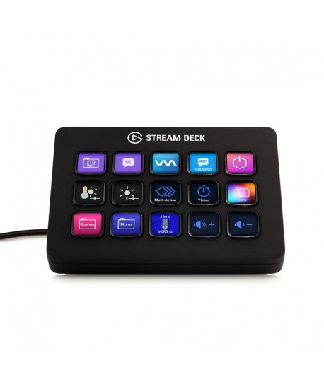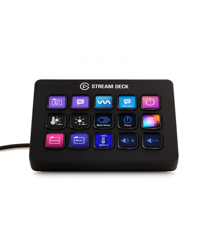 Dalle trasmissioni e l'editing al design, lo sviluppo, il networking; tutto ciò che ti serve è un'interfaccia per controllare tutte le tue app e i tuoi strumenti. Ti serve Stream Deck. I 15 tasti LCD pronti a lanciare azioni illimitate. Con un semplice tocco puoi controllare le app, lanciare post sui social, regolare l'audio, disattivare il microfono e altro ancora, mentre il feedback visivo conferma ogni comando.