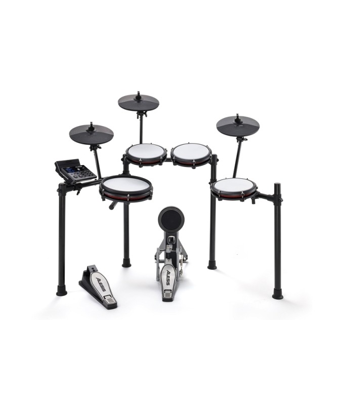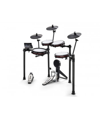 Alesis Nitro Max alza il livello della qualità sia per i batteristi principianti che per i musicisti più avanzati, offrendo un'autentica esperienza musicale con le pelli mesh di tipo premium, il tutto in un design ultra compatto. Dotato di 32 kit con suoni della rinomata libreria di campioni di batteria BFD, Nitro Max ti da la possibilità di connetterti tramite un ingresso audio wireless Bluetooth ad un qualsiasi device mobile, una serie di funzionalità di apprendimento integrate e 3 mesi di abbonamento Drumeo per lezioni illimitate con i migliori insegnanti del mondo. Nitro Max ti fornisce tutto ciò di cui hai bisogno per imparare a suonare la batteria velocemente e migliorare le tue abilità di batterista. Le pelli mesh bianche silenziose a maglia fitta sono molto reattive alla dinamica e generano un rumore contenuto, per permetterti di esercitarti quando e dove vuoi. Un'ampia gamma di suoni di batteria ultra realistici ti coinvolgeranno durante le tue performance qualunque sia il tuo stile musicale, e una serie di diversi strumenti di apprendimento ti aiuteranno nell'esercitazione riuscirai a migliorare il tuo timing e il tuo modo di suonare. Inoltre puoi riprodurre senza problemi i tuoi brani preferiti dal tuo device mobile o dalle piattaforme streaming tramite la connettività Bluetooth. Con le pelli a rete premium a trama fitta di Nitro Max, non c'è bisogno di preoccuparsi che le sessioni di pratica notturne disturbino i vicini o i membri della famiglia, non importa con quanta energia tu suoni. Il kit è dotato di un pad per rullante da 10" a doppia zona e di tre pad per tom da 8" tutti a singola zona e di un pad della grancassa di tipo verticale anch'esso con un'ampia superficie da 8". Per quanto riguarda i pad dei piatti troviamo un crash da 10" con funzione choke, un ride da 10" e un charleston da 10". Il drumkit Nitro Max è leggero, compatto ed elegante. I pad, i piatti e il modulo vengono montati su un rack a quattro gambe molto resistente che rimane fermo indipendentemente dall'intensità con cui suoni. Sono inclusi anche un resistente sake cable per la connessione dei pad al modulo, chiavetta per accordatura e montaggio e un paio di bacchette. Viene fornito anche un pedale della grancassa Alesis singolo di alta qualità e un pedale espressivo per il controllo del charleston. Grazie al design salva spazio puoi persino piegare il kit Nitro Max e renderlo ancora più piccolo per riporlo facilmente ovunque tu voglia: perfetto per camere da letto, soggiorni o qualsiasi altra area in cui lo spazio è limitato.