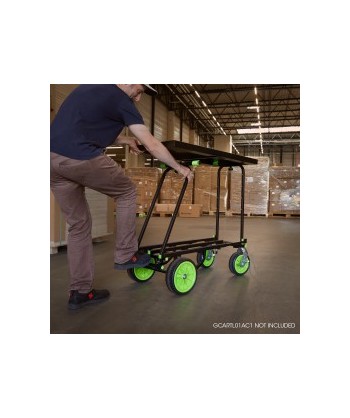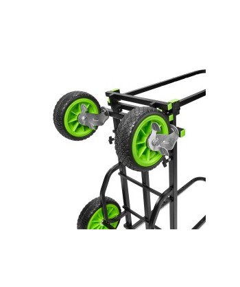 Le ruote dotate di bassa resistenza al rotolamento, di cui due fisse e due orientabili, rendono il carrello ancora più maneggevole anche in caso di gradini particolarmente alti o terreni accidentati. Il Gravity Cart è un accessorio insostituibile prima e dopo ogni spettacolo. Ma non è tutto: chiudendosi, questo carrello multifunzionale diventa compatto e, grazie al peso ridotto, può essere facilmente sollevato per essere scaricato dagli autobus che accompagnano le tournée. Allo stesso tempo può essere utilizzato con poco sforzo anche quando viene completamente caricato di attrezzature. Grazie alla struttura estendibile fino a 1,35 m e all'elevata portata di 170 kg, potrai trasportare le tue attrezzature tecniche su e giù dal palco rapidamente e, soprattutto, in totale sicurezza. Inoltre, grazie al suo eccezionale design ergonomico, eviterai di mettere a dura prova la tua schiena.