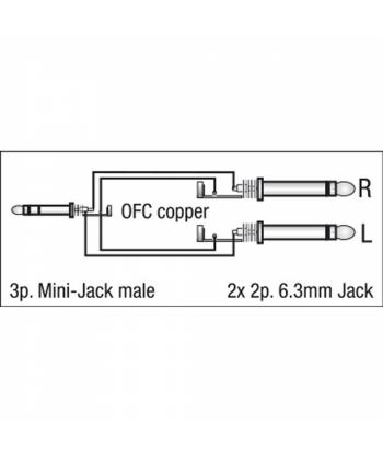 CAVO AUDIO CON 2 JACK MONO 6,3 mm / 1 JACK STEREO 6,3 mm, Mt 3,0