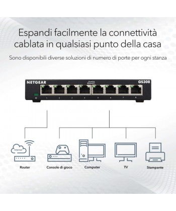 Netgear Switch Ethernet 8 Porte Unmanaged Gs308, Hub Di Rete Domestica