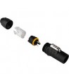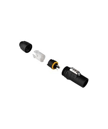 PowerCON TRUE1 Top un connettore per alimentazione di rete di tipo 16A impermeabile con sistema di bloccaggio. Sostituisce gli accoppiatori di apparecchiature quando necessaria una soluzione estremamente robusta in combinazione con un dispositivo di bloccaggio per garantire una connessione sicura all'alimentazione. PowerCON TRUE1 un connettore a prova di interruzione (Breaking Capacity CBC), ciò può essere collegato o scollegato sotto carico o in tensione.