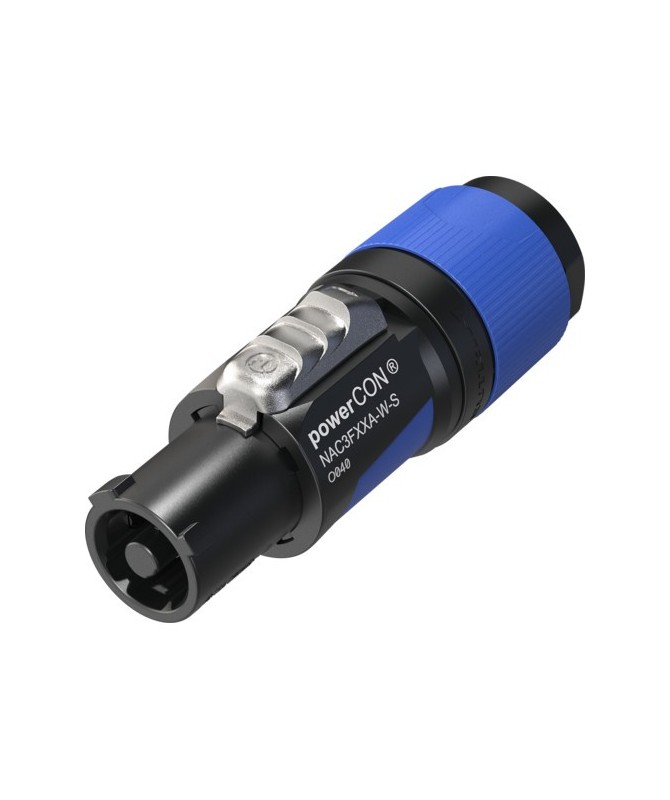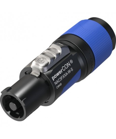Il powerCON FXXA/FXXB è un connettore di alimentazione monofase (a 3 conduttori) bloccabile con capacità di interruzione del circuito quando accoppiato con le prese della serie powerCON XX.