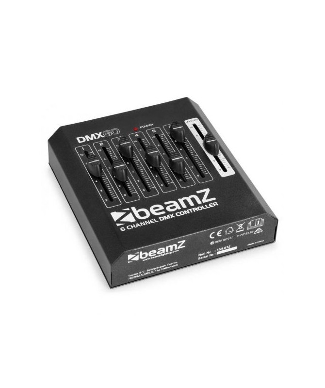 BeamZ DMX060 è una console luci con sei canali individuali con fader che controllano gli apparecchi tramite DMX. Adatto per illuminazione decorativa, illuminazione di zona e utilizzo del master fader per attenuare la luce al fine di creare un'atmosfera accogliente per ogni occasione.