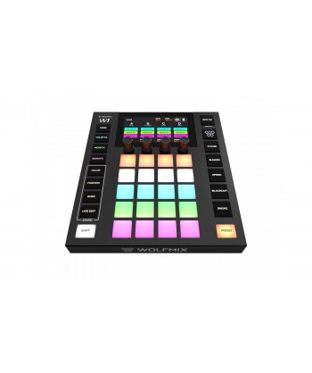 wolfmix w1 mk2 è un controller di illuminazione dmx ad alte prestazioni, progettato per creare spettacoli di luci al volo senza un computer. la versione mk2 aggiunge una nuova tipologia di encoder più performanti e una porta usb per la connessione di memory stick o di controller midi.