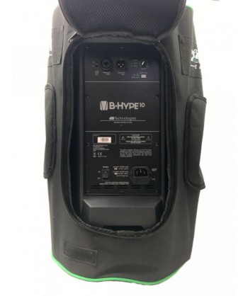 Compatibile con quasi tutte le casse da 10 pollici. Dotata di tasca posteriore con zip per le connessioni. Doppia Tasca laterale con velcro per maniglia. Foro per il posizionamento su stativo. Pannello frontale con zip e rete interna.