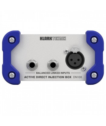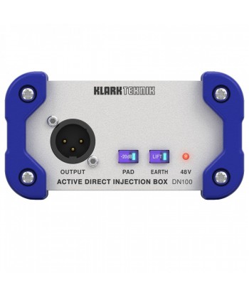 La DN100 è diventata uno dei preferiti sia tra i tecnici che tra i musicisti. Con la sua elevata headroom, risposta dinamica e chiarezza sonora, la DN100 riproduce fedelmente il carattere degli strumenti elettrici e acustici e consente di catturare molti più dettagli delle performance musicali. E' destinata ad applicazioni professionali in cui l'alimentazione phantom a +48V è una caratteristica standard su tutte le console di missaggio ed il suo design innovativo si traduce in un punto di clipping significativamente più elevato rispetto a molte altre DI Box attive, fornendo un'uscita di +10dBu su un carico di 2kΩ. Questa maggiore headroom implica che i segnali di ingresso di livello molto più alto possono essere accettati senza la necessità di un pad attenuatore. In combinazione con una topologia del circuito di ingresso a bassissimo rumore, la Klark Teknik DN100 offre una gamma dinamica molto ampia e richiede solo un singolo pad da -30dB per l'uso quando si collega alle uscite dell'amplificatore per lo strumento.