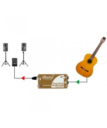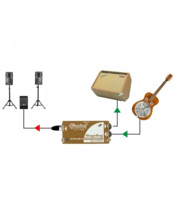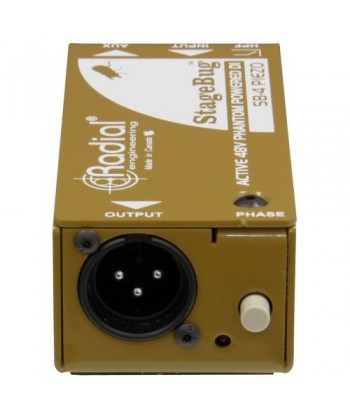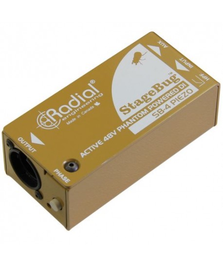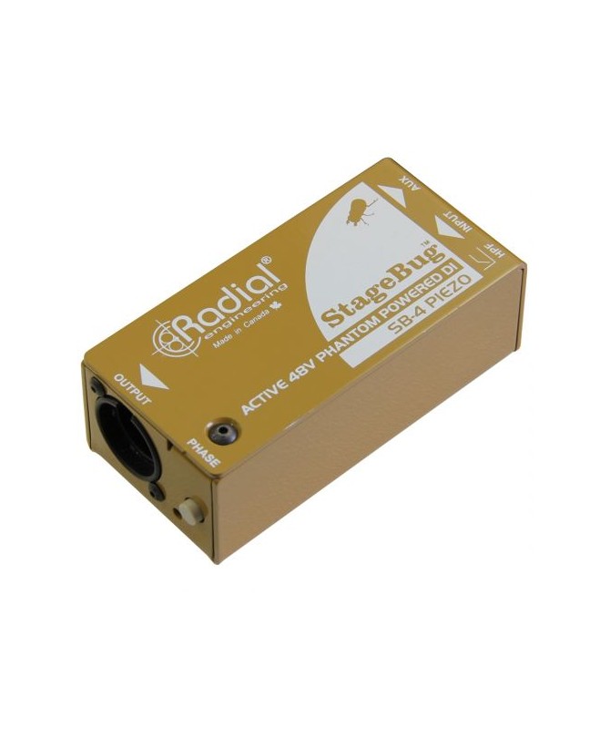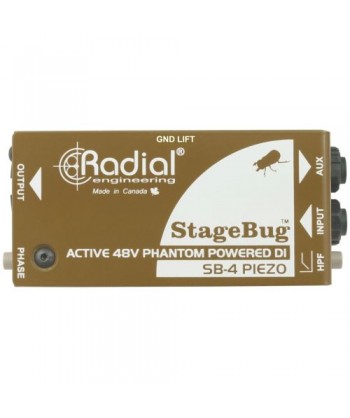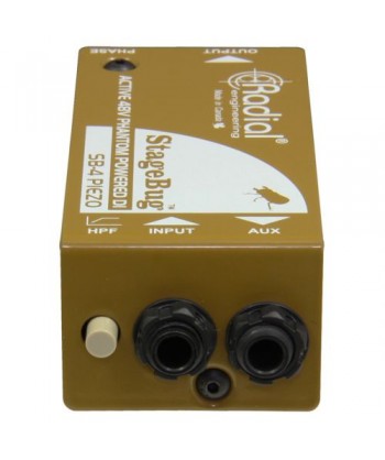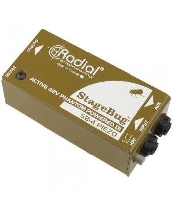 Il Radial StageBug SB-4 è una direct box attiva compatta ottimizzata per l'utilizzo con trasduttori piezoelettrici. Ciò consente a violino, dobro, mandolino, violoncello, contrabbasso e altri strumenti di essere amplificati meglio, usando un piezo che non compromette il suono o la risposta in frequenza. La progettazione inizia con un input jack da 1/4" per il pickup dello strumento. Diversamente dalle normali direct box che hanno una impedenza di ingresso di 1MOhm, l'SB-4 presenta un'impedenza molto elevata da 10 Mega Ohm per levigare quei picchi fastidiosi che danno ai piezo una cattiva reputazione. L'impedenza superiore amplia anche la risposta in frequenza per un suono più naturale e piacevole. il circuito attivo esegue la conversione da alta a bassa impedenza e bilancia il segnale per usare cavi lunghi fino a 100 metri senza perdite, offrendo una spettacolare linearità e una bassa distorsione su tutta la gamma audio.