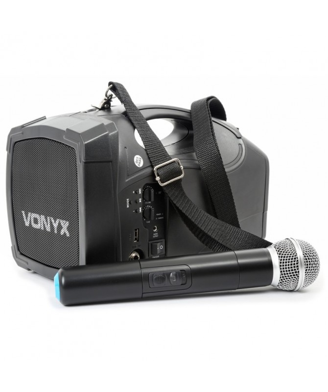 AMPLIFICATORE COMPATTO A BATTERIE CON MICROFONO PALMARE WIRELESS VHF