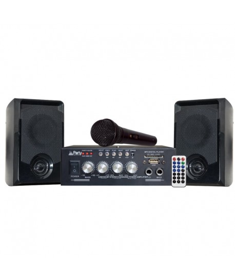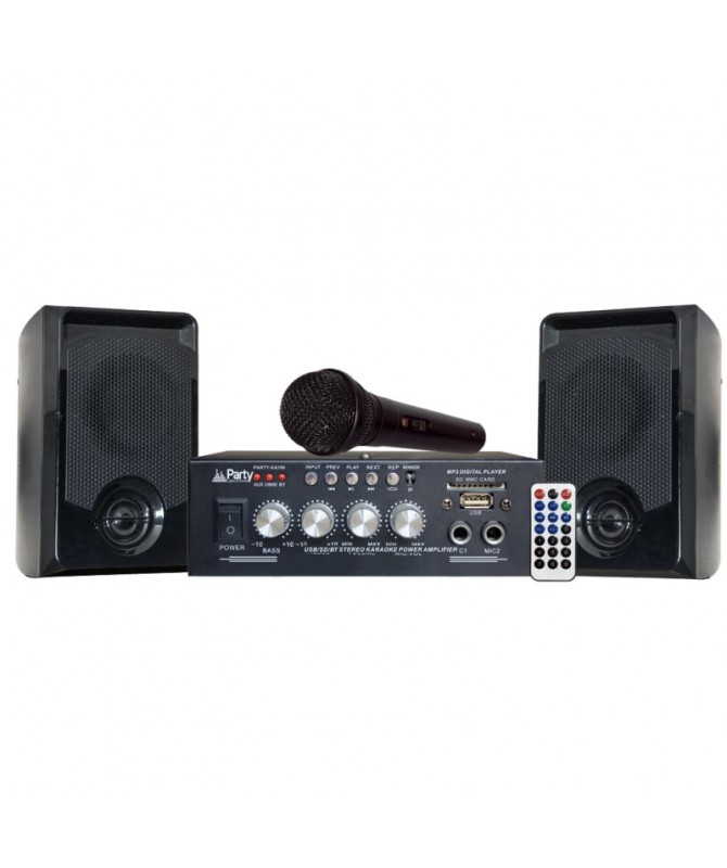 Un amplificatore stereo, un microfono e due casse: è tutto quello che ti serve per la tua serata karaoke: collega i tuoi device via Bluetooth o usa il lettore USB/SD, bilancia i volumi ed è tutto pronto per iniziare.