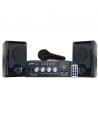 SET PER KARAOKE COSTITUITO CASSE AUDIO IN LEGNO, DUE MICROFONI, INGRESSI USB,SD.