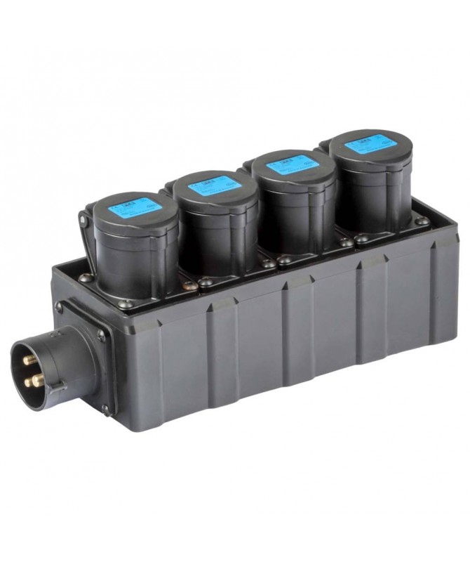 Box di distribuzione elettrica a 4 canali con ingresso spina CEE 16A - 2P+T - IP44 - 230V / uscita 6 x presa CEE 16A
