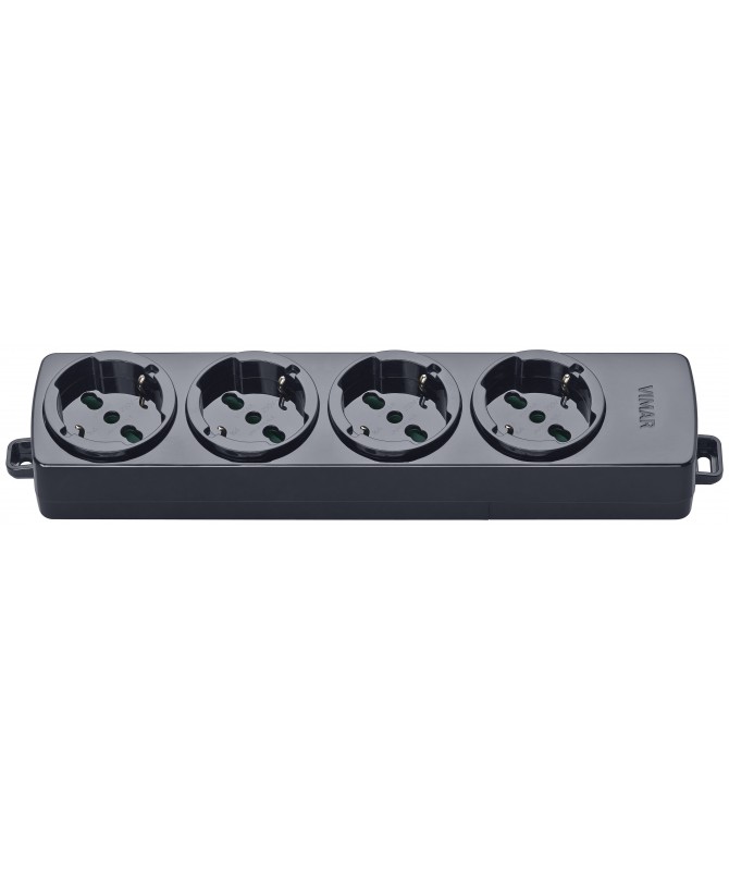 Presa mobile multipla 2P+T 16 A 250 V~, 4 uscite SICURY universale standard italiano tipo P40, potenza massima prelevabile 3680 W, nero