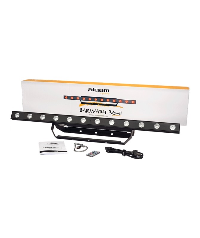 Con i suoi 12 LED RGB da 3W pilotabili singolarmente in tre gruppi di quattro LED, la barra RGB Algam Lighting BARWASH 36 II è il sistema di illuminazione polivalente indispensabile per dinamizzare tutte le vostre serate e le vostre esibizioni.