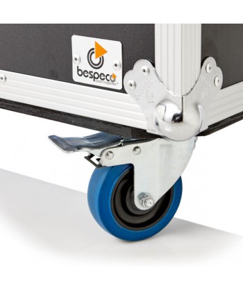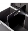 Baule professionale 80 x 40 x 40 cm, ultile per il trasporto di hardware, cavi ed accessori vari. Coperchio superiore con cerniera. Realizzato in legno multistrato 9 mm e laminato nero. Hardware professionale. Dotato di Skate con ruote 100 mm (due frenati). Possibilità di impilaggio.