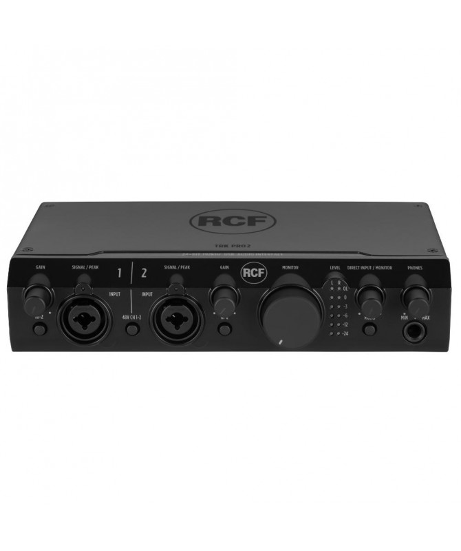 L’interfaccia hardware TRK PRO2 di RCF è una soluzione USB 2.0 Class Compliant e Bus Powered che include tutte le connesioni richieste per i tuoi microfoni e strumenti musicali a un computer macOS o Windows. Il circuito interno di preamplificazione a 2-canali, estremamente lineare, è dotato di alimentazione phantom +48V e ingresso strumenti ad alta impedenza (Hi-Z). Il segnale in ingresso e uscita dalla DAW (Digital Audio Workstation) viene gestito con risoluzioni fino a 24-bit, 192 kHz. L’interfaccia può essere collegata a monitor attivi, amplificatori, cuffie, mixer analogici o qualsiasi altro dispositivo audio analogico.