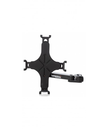 Supporto per tablet con aggancio su tubo da diametro 14 mm a diametro 22 mm. Adatto a tutti i tablets da 8" a 10.1". Speciale verniciatura soft touch nell