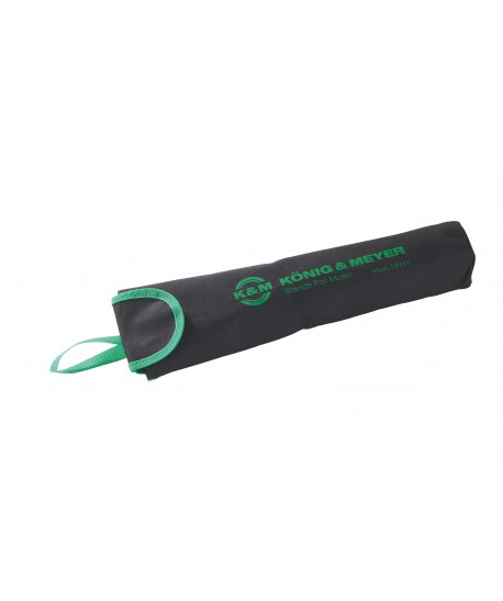 Custodia impermeabile in nylon con chiusura a velcro, maniglia per il trasporto e logo K&M serigrafato. Compatibile con i leggii 101