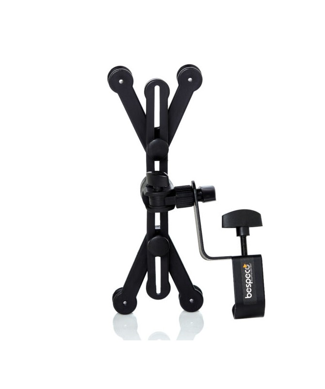 Supporto per tablet con aggancio su tubo da Ø 14 mm a Ø 35 mm. Adatto a tutti i tablet da 10″ a 13″.