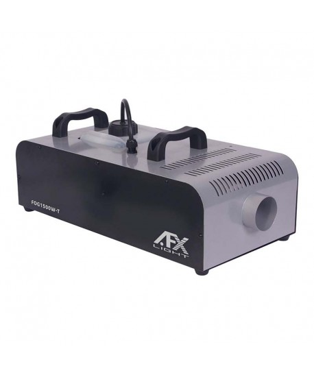 La AFX Light FOG1500W-T è la macchina del fumo da 1500W dotata di timer e due comandi remoti, uno con e uno senza fili. Manovrabile anche tramite il canale DMX, questa macchina è provvista di staffa per l'installazione ed è in grado di emettere il suo getto di fumo fino a una distanza di 12m.
