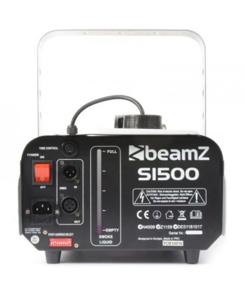 BeamZ S1500 è una compatta macchina del fumo DMX da 1500W con favolose emissioni di fumo che la rendono perfetta per diversi ambienti. Dotata di timer, elemento di riscaldamento di alta qualità e serbatoio per il liquido incorporato. Telecomando in dotazione.