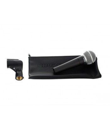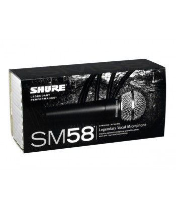 Il modello SM58 della Shure un microfono dinamico unidirezionale (Cardioide) per applicazioni vocali realizzato per l'utilizzo in studi di registrazione ed impianti di amplificazione professionali. Un filtro sferico incorporato molto efficace riduce al minimo il rumore del vento e l' effetto pop. Il diagramma polare Cardioide isola la sorgente sonora principale e simultaneamente riduce al minimo il rumore di fondo indesiderato. Il microfono SM58 presenta una risposta vocale ottimizzata per fornire un suono la cui qualità costituisce uno standard mondiale. La robustezza della fabbricazione, il comprovato sistema di supporto antivibrazione e la griglia in acciaio inossidabile ne garantiscono la costanza delle prestazioni, anche quando lo si maneggia senza delicatezza. Sia all'aperto che in interni, per canto o parlato l'SM58 il microfono scelto dai professionisti in tutto il mondo.