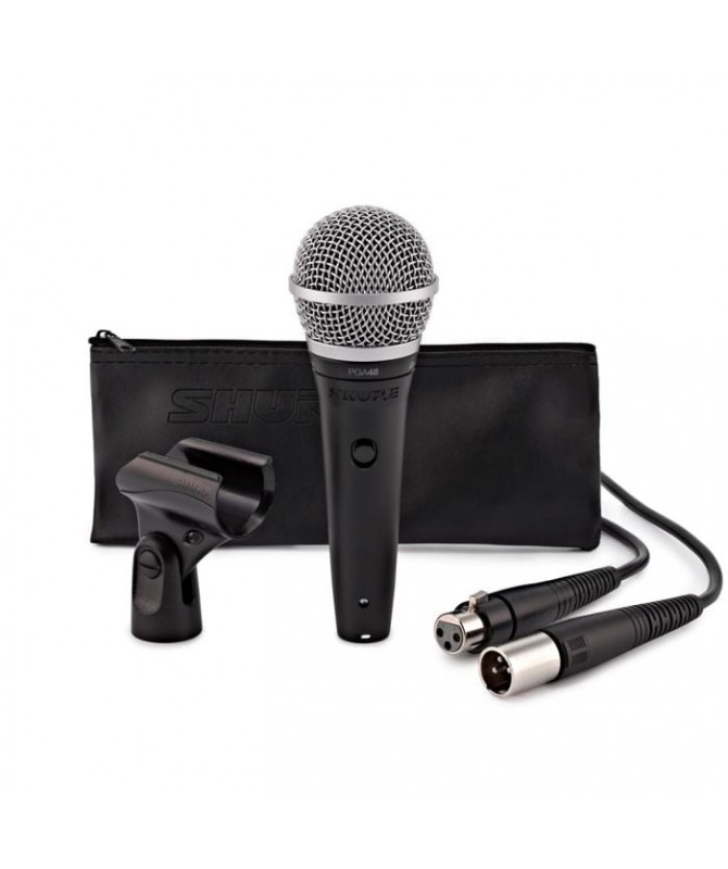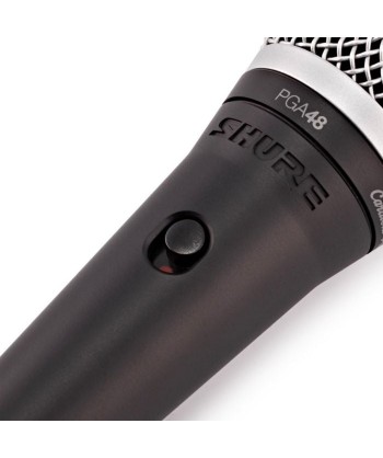 PGA48 è un microfono robusto e durevole con risposta studiata per il parlato e per il karaoke, fratello minore dello Shure PGA58. È ottimizzato per riprodurre il parlato con un'elevata intelligibilità e, allo stesso tempo, per evitare la ripresa dei rumori indesiderati. Incorpora un interruttore on/off per facilitarne il funzionamento. Lo Shure PGA48 sostituisce la vecchia versione Shure PGA48, rivisitato nel design e nelle qualità sonore. Il microfono dinamico per voce PGA48 è un microfono di qualità professionale, progettato per essere robusto e durevole, e per avere un suono eccellente. Ideale per il parlato e per il karaoke, PGA48 incorpora un interruttore on/off e include un adattatore snodato, un astuccio morbido con cerniera e la scelta tra un cavo XLR-XLR o un cavo QTR (XLR-jack 6,3 mm). La capsula microfonica è ottimizzata specificamente per offrire unelevata intelligibilità allinterno della gamma di frequenze della voce. La caratteristica polare cardioide consente di riprendere il suono della sorgente desiderata, senza riprendere i rumori estranei. Il design industriale moderno è caratterizzato dalla finitura metallica nera e dalla classica griglia sferica argentata.