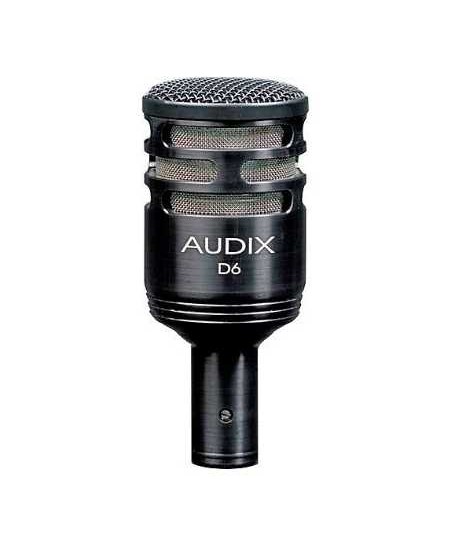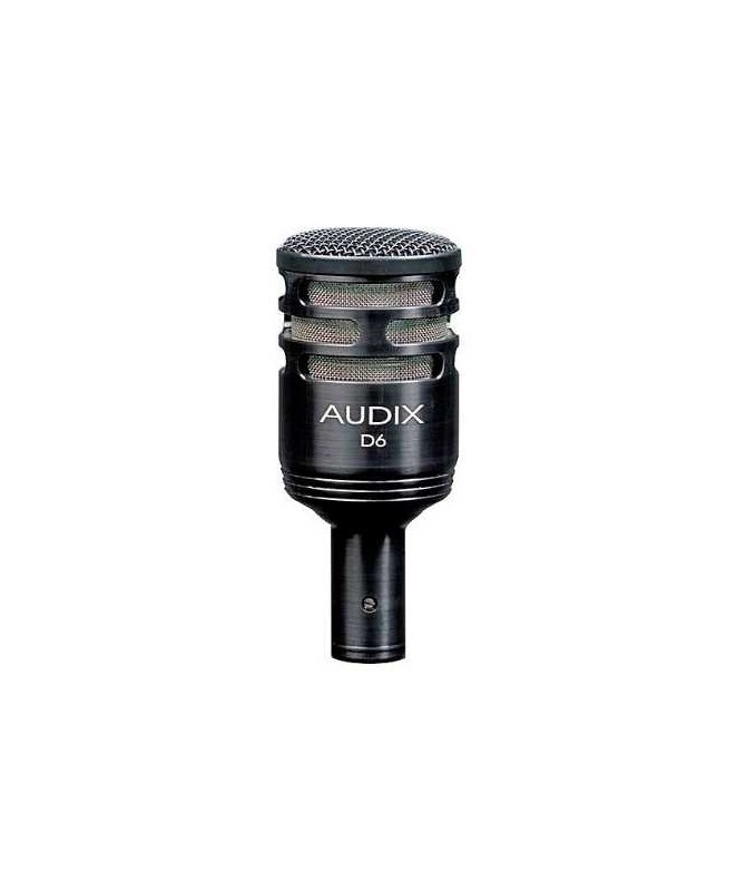 Progettati, lavorati, assemblati e testati da Audix negli Stati Uniti, il D6 un microfono dinamico per strumenti utilizzato per il palco, lo studio e le applicazioni broadcast. Il D6, che si caratterizza con un diagramma polare cardioide per l'isolamento e il controllo del feedback, dotato di un diaframma VLM (Very Low Mass) per una naturale e accurata riproduzione del suono. Il D6 leggero, compatto e facile da posizionare. Con una risposta in frequenza di 30 Hz - 15 kHz e la capacità di gestire livelli di pressione sonora superiore a 144 dB, il D6 una scelta eccellente per la ripresa di strumenti che richiedono una estesa riproduzione delle basse frequenze, come grancassa, tom di grandi dimensioni, e casse per basso.
