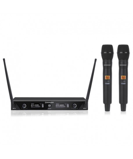 KIT DOPPIO RADIOMICROFONO PALMARE (gelato) MONOFREQUENZA ( Frequenza: 660.700Mhz - 662.300 Mhz )