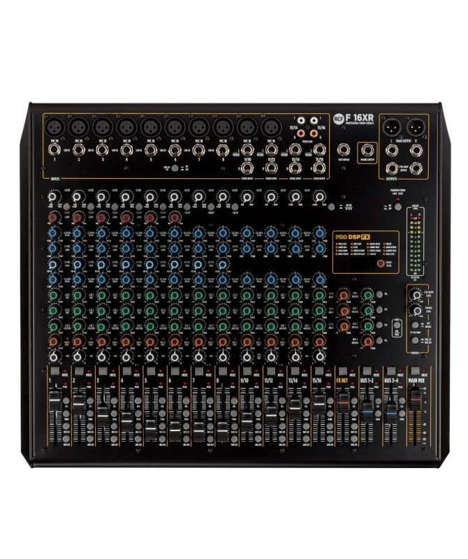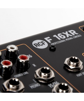 Inspirata alle unità analogiche professionali della Serie E, la nuova generazione di mixer RCF della Serie F offre un’elevata qualità sonora e la possibilità di scelta tra cinque formati compresi tra 6 e 24 canali. Un potente strumento per il musicista e l’appassionato, concepito e progettato interamente dal team R&D di RCF. Costruito in un robusto telaio in metallo, ciascun mixer mette a disposizione un flusso audio interamente bilanciato da ingresso a uscita, oltre ad un esclusivo processore PRO DSP FX: 16 effetti professionali, tra cui Riverberi (Hall, Room, Plate, Spring), Delay (Mono, Stereo e Multitap), Chorus, Flanger e Echo. I modelli F-10XR, F-12XR, F-16XR e F-24XR includono un’interfaccia audio USB, per la registrazione stereo su sistemi DAW su PC, e 2 canali per la riproduzione