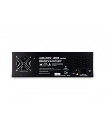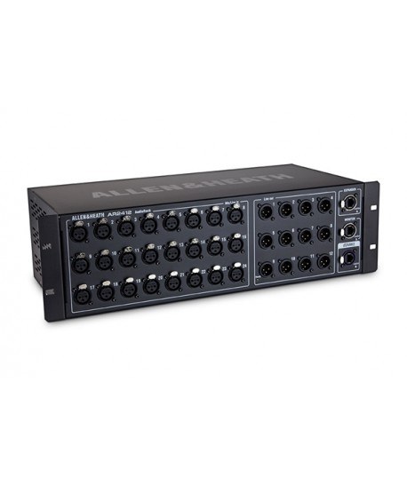 L'AR2412 un interfaccia audio a rack per i sistemi di mixaggio digitale Allen & Heath GLD e Qu. Fornisce 24 preamplificatori microfonici / linea controllati da remoto e 12 uscite di linea XLR. Si collega al mixer con un singolo cavo Cat5 utilizzando il protocollo dSNAKE di Hallen & Heath. possibile collegare all'AR2412 un AudioRack AR84 o AB168 per espandere il numero di ingressi e di uscite del sistema. Una porta Monitor dedicata consente la connessione al sistema di missaggio personale Allen & Heath ME. AR2412 semplicemente un'interfaccia audio. Non può essere usato da sola. Deve essere connessa ai mixer GLD o Qu in cui viene elaborato l'audio.