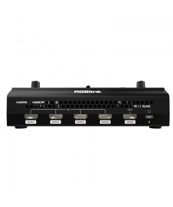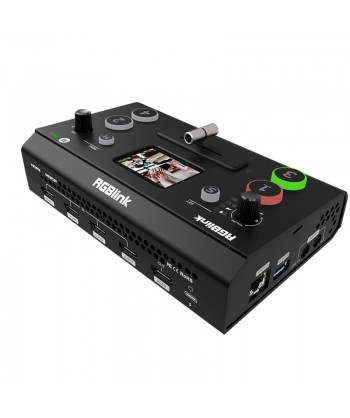 Con tutte le caratteristiche del modello precedente, incluso l'esclusivo display di anteprima LCD TFT da 2,1" integrato, il mini switcher RGBlink mini per lo streaming presenta 4 ingressi HDMI ad alta definizione, un'uscita HDMI configurabile e un'uscita streaming USB 3.0 per connettersi praticamente con qualsiasi laptop o piattaforma di streaming. Consente lo scaling e il crop delle immagini, sovrapposizione Logo, 6 effetti di transizione, visualizzazione multipla di 6 immagini, passaggio tra anteprima e programma ecc. La funzione PiP riceve una spinta in questa nuova versione, con due finestre video completamente scalabili in qualsiasi posizione possibile. Sfrutta l'audio da più sorgenti con il mix, compresi i connettori Line e mini-jack TRRS per segnale stereo + microfono, oltre a supportare le combinazioni cuffia/microfono. Mini è alimentato tramite la porta USB-C standard per una compatibilità ancora maggiore e flessibilità mobile live. Leggero (solo 480 g) e robusto grazie a un nuovissimo alloggiamento in ABS pressofuso di precisione resistente agli urti, con prestazioni hardware e affidabilità leader del settore, mini è il mini switcher di streaming indispensabile.