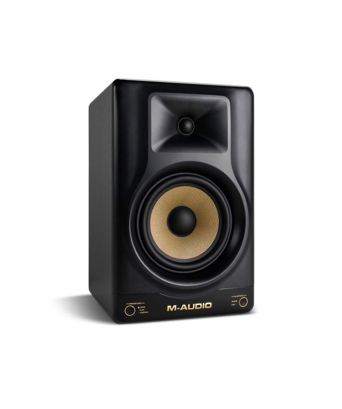Monitor near field da studio, con DSP integrato, convertitore Burr-Brown, bi-amplificato con 60W per i bassi e 40W per gli acuti, woofer in Kevlar schermato da 6,5", tweeter in seta da 1", selezione di differenti modalità di ascolto incluse curve di EQ personalizzabili tramite App Android e iOS, porta per le basse frequenze posteriore, ingresso XLR e jack da 1/4" bilanciato/sbilanciato, connettività Bluetooth 5.0, regolazione del volume, power on/off. Dimensioni: mm 335 x 216 x 218, peso: 7,2 kg. N.B. il prezzo indicato è per singolo monitor.