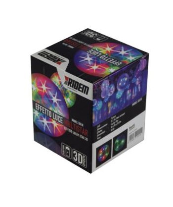 Straordinario effetto luce in grado di riprodurre stelle in 3 dimensioni. Originale e pratico allo stesso tempo. E' alimentato da 3 batterie stilo(non incluse) che garantiscono ore di funzionamento. Il cavo di tipo trasparente da 1mt. Può essere trasportato facilmente ed subito pronto all'uso in qualsiasi festa, vetrina o in mille altre situazioni.