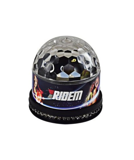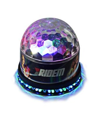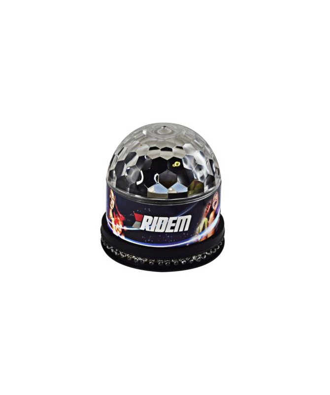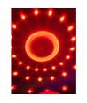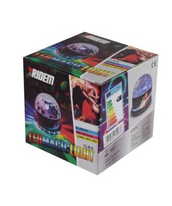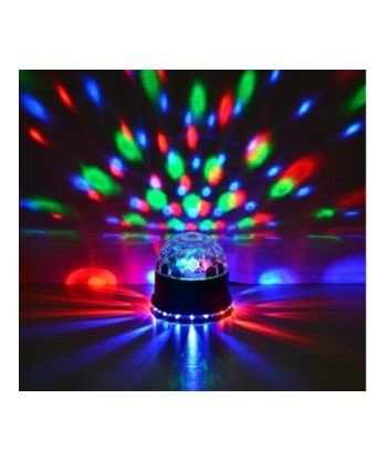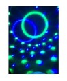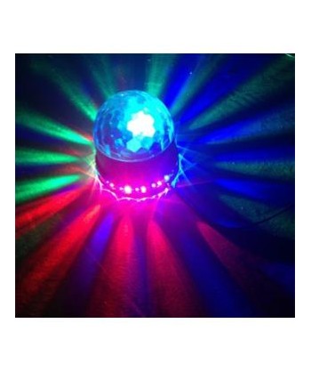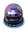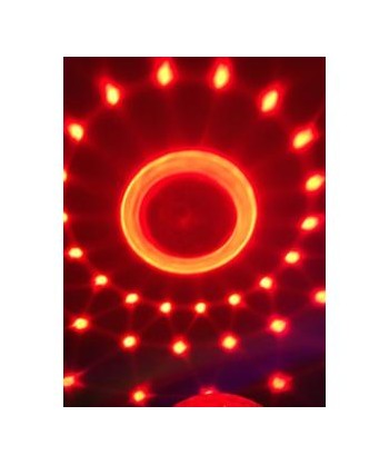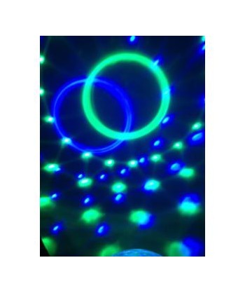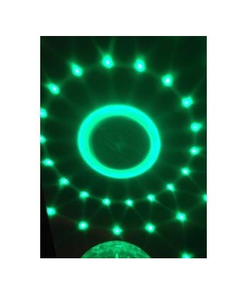 Doppio effetto luce utilizzabile sia appoggiato su piano sia appeso a parete. Nella parte inferiore, 48 mini led illuminano a 360 la superficie d'appoggio. Nella parte superiore la calotta sfaccettata riflette i raggi colorati generati dai 6 led interni da 1W di tipo RGBWAP montati su base rotante. Ricrea uno straordinario effetto che vivacizzerà e vostre feste.