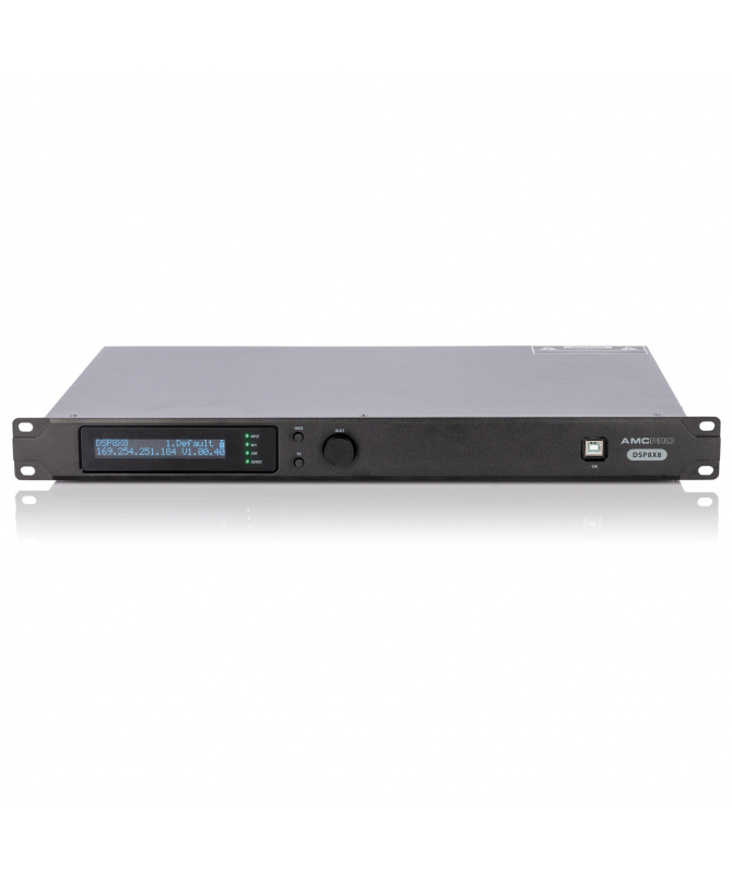 DSP 8X8 – processore sonoro con matrice input/output 8X8 per sistemi conferenza e musica di sottofondo. Il dispositivo funziona sia con segnali audio a livello di linea che a livello di microfono, dispone di un'alimentazione individuale di +48 V per ciascun ingresso. Il processore può automatizzare completamente i sistemi audio in base alle priorità di input, ha anche la capacità di controllare le posizioni delle telecamere PTZ tramite RS485 o RS232. GPIO è disponibile anche per controllare i principali parametri DSP o indicare lo stato del DSP. Il dispositivo ha ampie capacità di gestione sia tramite software Windows che tramite RS232 o RS485, TCP/IP, quindi può essere integrato con altri sistemi di building automation o di gestione delle apparecchiature. Il controllo di alcune funzioni è possibile anche tramite i pulsanti e lo schermo LCD del dispositivo stesso