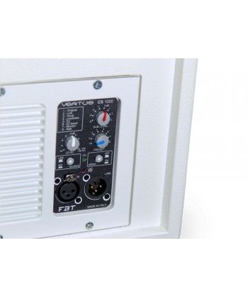 Il Vertus CS1000 è un array professionale che soddisferà il musicista alla ricerca di un PA compatto, facilmente trasportabile, modulare, pronto all'uso in pochi minuti ma di qualità "no-compromise". Inoltre è capace di integrarsi in modo elegante e poco invasivo in qualunque ambiente ed installazione che richieda un suono di grande qualità ed una caratteristica direzionale controllata. Il cabinet del subwoofer, configurato in bass-reflex, dispone di un altoparlante da 12" a escursione lunga, di un modulo di amplificazione a due canali in Classe-D, ed un vano per contenere l'asta di sospensione ed il satellite. Il satellite passivo in multistrato di betulla è connesso al sub tramite un cavo speakon in dotazione. Contiene 6 altoparlanti al neodimio da 3" full-range. La dimensione contenuta in larghezza della colonna permette una dispersione di 110° nel piano orizzontale. Nel piano verticale invece l'array di 6 altoparlanti disposti meccanicamente nel pannello a formare un j-array consente una dispersione verticale di 30° (+10°/-20°). Il subwoofer è dotato di una maniglia in alluminio con inserto in gomma per un'impugnatura confortevole, tramite la quale è possibile trasportare l'intero sistema composto da subwoofer, satellite, pali di sostengo, snodo e cavetteria per una comodità impareggiabile. Il modulo di amplificazione in alluminio pressofuso, senza ventole, ha un canale da 600W LF e uno da 400W HF in classe-D ad alta efficienza e dotato di alimentazione switching. L'elaborazione del segnale audio è totalmente digitale tramite DSP e convertitori a bassissimo rumore. Dotato di 8 preset di equalizzazione, consente di avere il suono appropriato ad ogni condizione di utilizzo. Il volume del satellite può essere regolato, rispetto a quello del subwoofer, da -4.5 a +5 in 8 step. Un filtro HPF selezionabile permette di tagliare le frequenze troppo basse del subwoofer che potrebbero dare fastidio in certe condizioni (palchi risonanti, ambienti con acustica difficile,