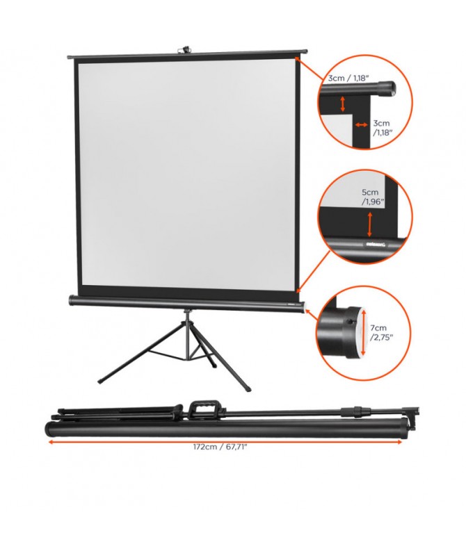 SCHERMO A BASE TRIPODE ECONOMICO, FORMATO 1:1, Lati cm 158 x 158