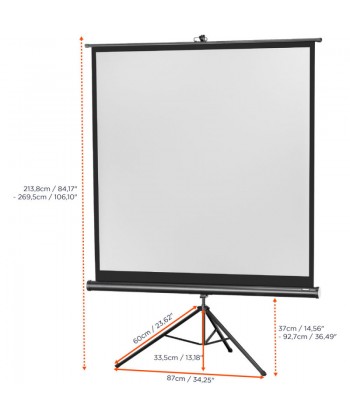 Lo schermo a treppiede celexon, grazie al rapido sistema di montaggio e smontaggio. può essere comodamente installato in qualsiasi ambiente. La robustezza e la stabilità del cassonetto, così come la perfetta planarità del telo, contribuiscono all'elevata qualità del prodotto.